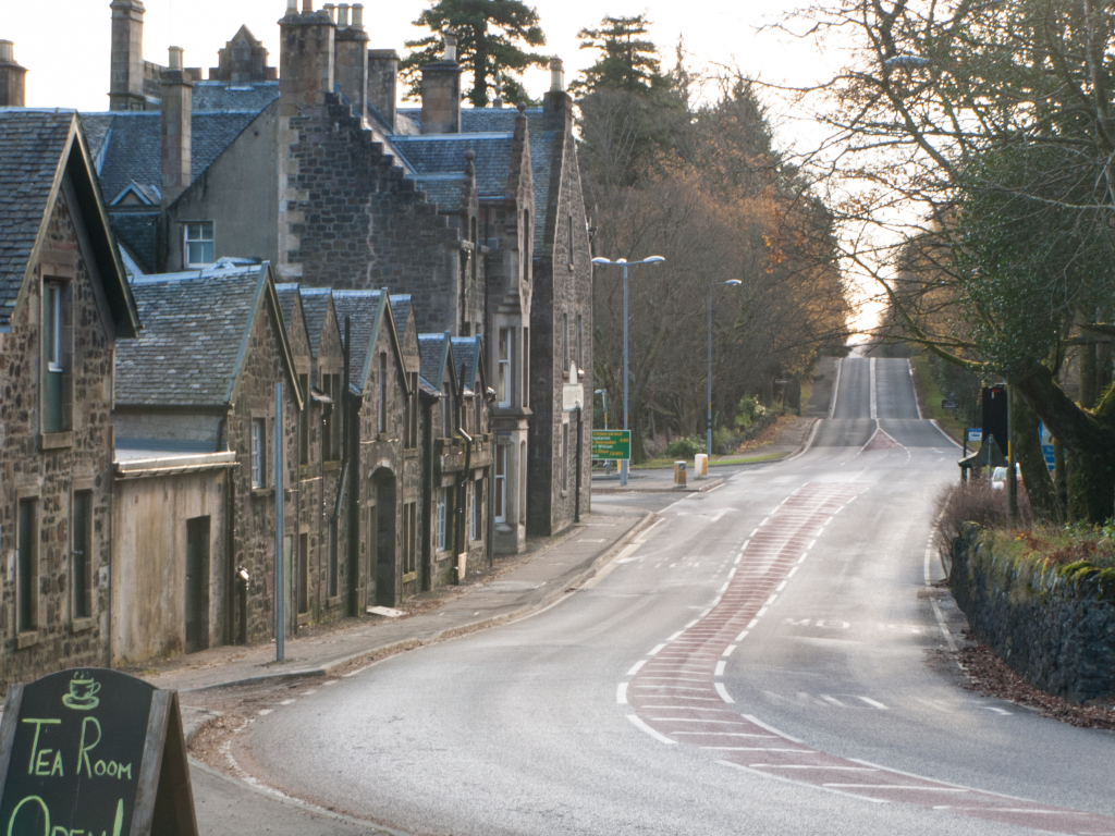 For me, the main story here is the road – a quiet stony village on a road to somewhere. So, as Jon suggested, I cropped the picture to bring the road more into the center of the picture, and removed the tea shoppe sign. I would like to have kept more of the curve at the bottom right, but I can’t do that and remove the sign.